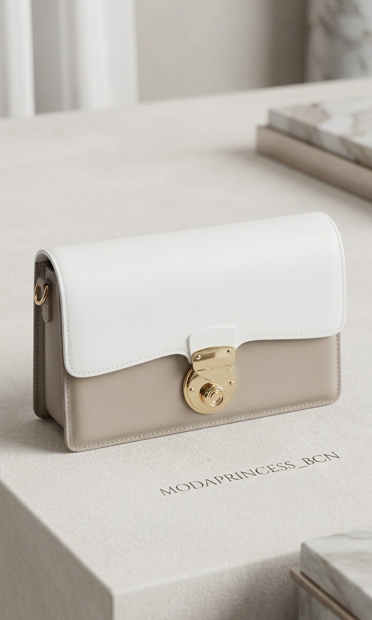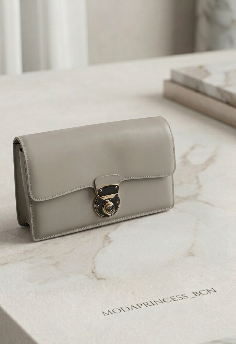 Bolso en tono azul suave con detalles dorados, ideal para looks delicados y sofisticados.